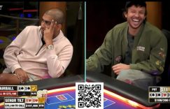 【EV扑克(www.evp86.com)报道】本周在Hustler Casino Live直播中,Nik ‘Airball’ Arcot 和 Sam ‘Senor Tilt’ Kiki 打出了一手趣味性极强的牌局。在一池18.1万美元的底池中,Arcot在对手犹豫是否跟注时,竟主动亮出了一张自己的底牌。