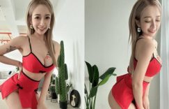哈囉各位朋友,最近應該收到很多新春祝福吧?尤其是各種妹子的新年裝扮,都紅紅火火性感到不行,挺出長輩的姿態讓人想不發紅包給他都很難啊~JKF女郎「嵐芯語」這次過年也沒例外,換上大紅色的爆乳小可愛和小短裙,裡面隱隱約約能看出只穿著一件本命年最需要的紅色丁字褲,白皙豐滿的雪乳和蜜桃就這樣呼之欲出啦! (