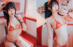 看到速食店有這款女店員,薯條一定要無限加大!眼前穿著紅色麥當勞比基尼的正妹就是「小艾啾啾」,綁著雙馬尾的淘氣模樣,眨眨媚氣的電眼讓人無法抗拒,還以一身白皙又凹凸有致的曲線,她還犯規地將薯條們夾在邪惡的綁帶部位,那幾條特別可口讓人垂涎三尺! (