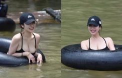 【EV女孩】泳圈被壓扁!溪邊戲水見巨乳妹胸前「滿出來」 真實身分引網友好奇