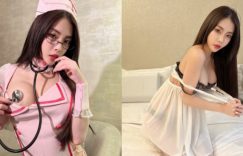 JKF女郎張楚曼Chuman有著一副火辣身材,一雙大眼睛和酒窩增添了甜美感,是個又甜又辣的女孩。最近張楚曼Chuman化身魅惑小護士,穿著爆乳護士裝以外,還拿著聽診器想聽自己的心跳聲,但……怎麼沒聲音?難道是因為胸大太所以聽不到嗎?