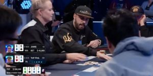 当赛场上还剩余81名选手时,裁判宣布比赛暂停,即将同步牌局。此时有一手正在进行中的牌局,也正是这一手牌,直接诞生了第81名和第80名。