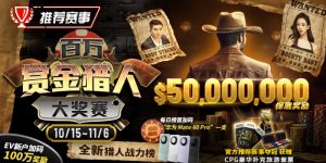 此赛制在WSOP广受欢迎,这次<百W赏金猎人大奖赛>就献上最高50W刀Top赏金,让你一举夺下比冠军还多的惊人奖励!