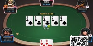 这些牌将在许多转牌面拿到一个听牌,而且大多数是强听牌(8张以上补牌),可以轻松地做一个诈唬下注。