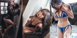 在海邊穿著洞洞泳裝的照片,更是讓人想把手伸進洞洞裡>///<