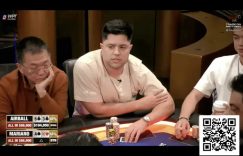 不久后, 宝岛一哥“Nevan” 又以A♠️ J♠️击中A对,从其10♦️ 10♣️手中赢走大量筹码,使的筹码一度跌落至仅剩4个大盲注。但他随即上演绝地反击,连续赢得两次摊牌:先是口袋J战胜K-Q,随后A-K击溃口袋Q,最终以健康的742,000筹码结束了D组比赛。