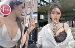 上下班的路程總是特別的艱辛,搭捷運更是人擠人得難受,但看到這兇猛的邪惡畫面,疲憊感可以直接秒速消失!一上捷運就看到透明隔板上貼著這威猛的兩顆核彈級,原來來自這位火辣正妹【肝連妹】,炎炎夏日穿著細肩帶上衣就出門的節奏,卻是一個超深v領完美的展示不見底的海溝,就在停靠站的那個瞬間,一個離心力讓那雙嫩乳服貼在隔板上,畫面真是讓全車都超嗨! (