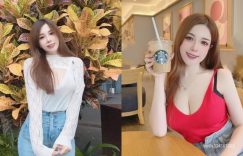 【EV扑克】正妹「吉寶」喝星巴克畫面太誘惑,深V曲線太誘人了!
