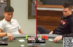 【EV扑克(www.evp66.com)报道】星期四,Doug Polk和扑克圈知名视频博主Ethan “Rampage” Yau在Polk自家的扑克室The Lodge Poker Card Club打$10/$20的无限注德州扑克。虽然这个游戏级别对职业牌手来说“洒洒水啦”,但两人的单挑还是进行了将近六个小时。而Rampage在这场对决中也成功地证明了自己的实力。