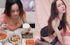 【EV女孩】氣質正妹在家吃飯「雪乳放桌上」,超火辣黑絲性感至極!還是位平面設計師~