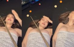 你去過撞球館嗎?身為一個撞球高手,除了技巧以外,也需要一個超穩的架桿器,這樣才能幫助自己一桿進洞。人氣網紅Yumi.k最近曝光她當人體架桿器的影片,畫面中她躺在撞球檯上,朋友則把撞球桿架在她的深溝中間,超穩手感要撞出好成績不是夢想!