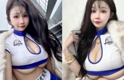 有著I罩杯巨乳的JKF女郎艾妃Aifei,除了是模特兒以外,也常跑車展擔任Show Girl,但最近她到麗寶國際賽車場工作時,不知道是不是主辦單位準備的衣服太小件,還是艾妃Aifei胸部真的太大罩不住,穿上制服後艾妃Aifei的南半球被強制露出,乳量太驚人。