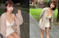 在公園閒晃的時候穿這麼少會不會著涼?這位外型甜美可愛的短髮妹子,就只穿著超清涼的爆乳蕾絲小睡裙,搭著一件針織罩衫,不只是胸前豐滿肉肉呼之欲出,超短的裙擺也讓她纖細的美腿都露在外面啊~阿捏真的可以嗎? (