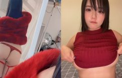 過新年一定要豔紅一下!這就有一位兇猛的正妹親自示範最佳穿搭,紅色皮草外套下罩不住猖狂傲人的乳量,深不見底的事業線讓人目不轉睛,就在鏡頭一晃之際,馬上又有亮點跑出,身後的全身鏡完美露出紅色細丁字褲被白皙蜜臀緊夾的模樣,加上吊帶襪的魅力是不容小覷! (