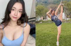 【EV女孩】台美混血辣模「毛咪Catty」森林裡秀一字馬!超短真理褲露「白嫩蜜腿」!